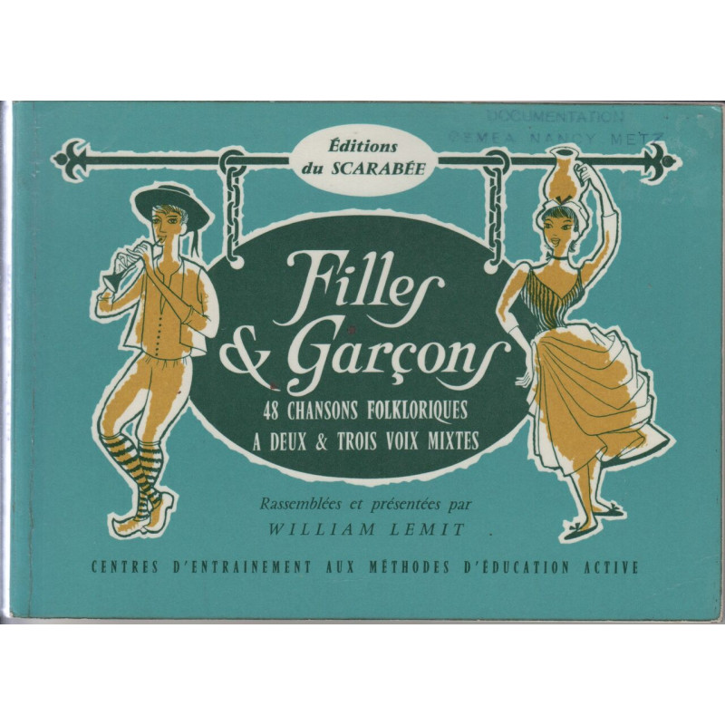 FILLES ET GARCONS - 48 CHANSONS FOLKLORIQUES A DEUX ET TROIS VOIX MIXTES William Lemit Du scarabee. 1962 in 8. Broché. 108 pages Bon Etat