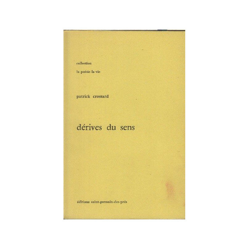Crossard Patrick Éditions Saint-Germain-des-Prés. 1976 in 8. Broché. 87 pages --- ---- Bon Etat Dedicace de l'auteur petite tache de couverture