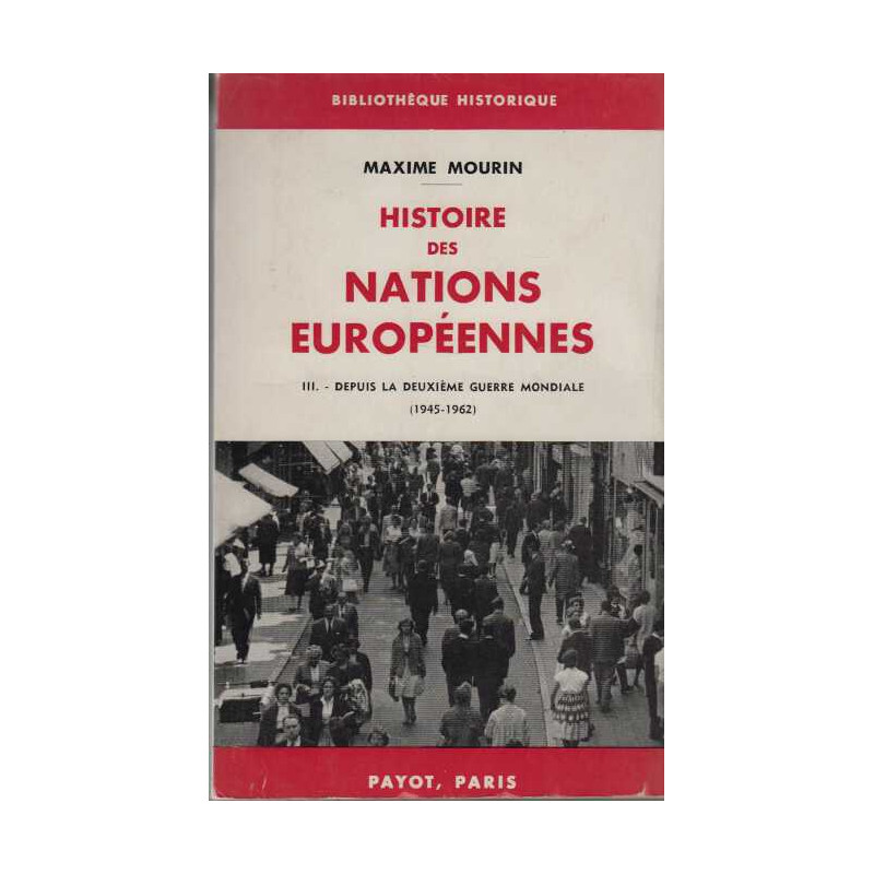 Histoire des nations européennes. tome III : depuis la deuxième guerre mondiale (1945-1962) Maxime Mourin Payot. 1963 in8. Broché. 448 pages Neuf