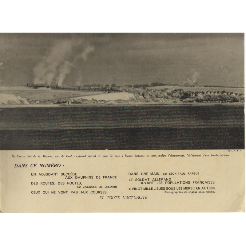 Bon Etat De l'autre cote de la manche l'appareil special de prise de vues a longue distance saisi malgre l'eloignement l'eclatement de la bombe aerienne. Un adjudant succede aux dauphins de france. Le soldat allemand devant lespopulations francaises