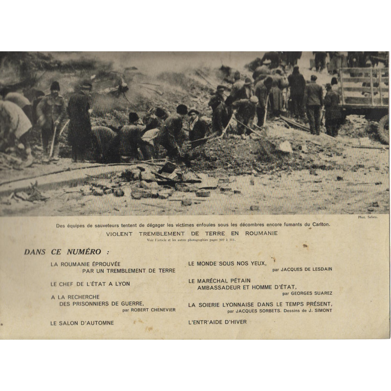 Etat Correct LA ROUMANIE EPROUVEE PAR UN TREMBLEMENT DE TERRE - LE CHEF DE L'ETAT A LYON - A LA RECHERCHE DES PRISONNIERSDE GUERRE PAR CHENEVIER - LE SALON D'automne - le monde sous nos yeux par de lesdain - le marechal petain ambassadeur et homme d'