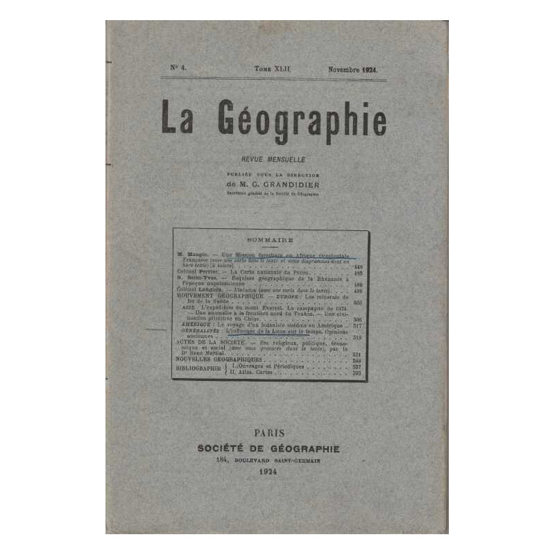 La Geographie MG Grandidie Societe de geographie. 1924 in8. Broché. 130 pages Bon Etat car annotation de couverture
