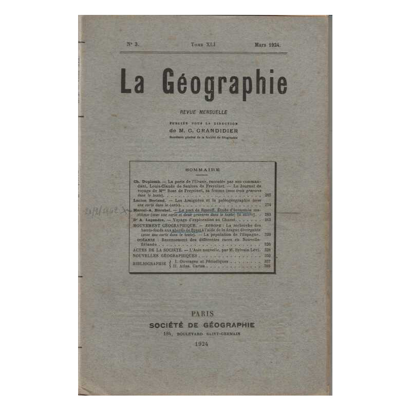 La Geographie MG Grandidie Societe de geographie. 1924 in8. Broché. 110 pages Bon Etat car annotation de couverture