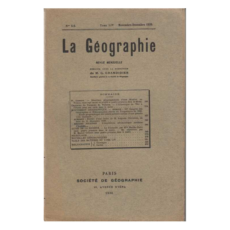 La Geographie MG Grandidie Societe de geographie. 1930 in8. Broché. 150 pages Bon Etat