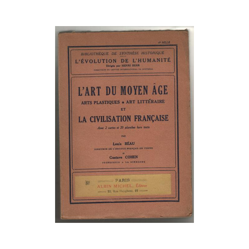 L'art du moyen age / arts plastiques-art litteraire et la civilisation française Reau Louis/ Cohen Gustave Albin michel. 1935 in8. Broché. 474 pages Bon Etat