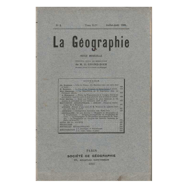 La Geographie MG Grandidie Societe de geographie. 1925 in8. Broché. 130 pages Bon Etat car annotation de couverture