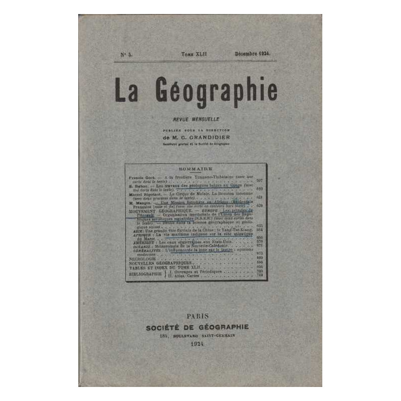 La Geographie MG Grandidie Societe de geographie. 1924 in8. Broché. 158 pages Bon Etat car annotation de couverture
