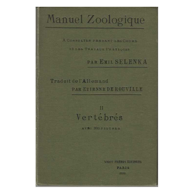 Manuel zoologique. A consulter pendant les cours et les travaux pratiques. Tome 1 : Invertébrés. Tome 2 : Vertébrés