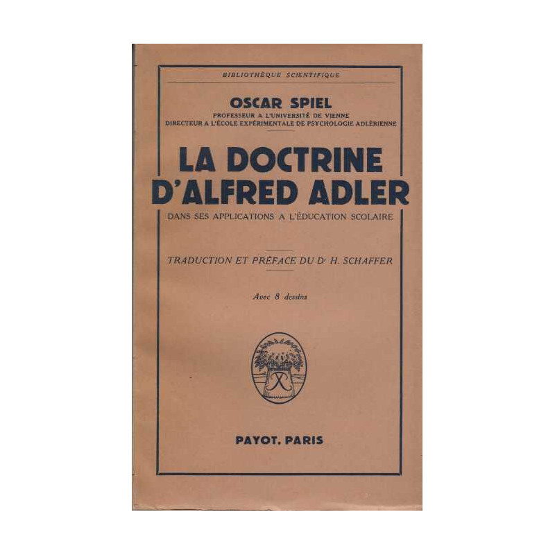 La doctrine d'Alfred Adler dans ses applications à l'éducation scolaire Oscar Spiel Payot. 1954 in8. Broché. 295 pages Très Bon Etat non massicote