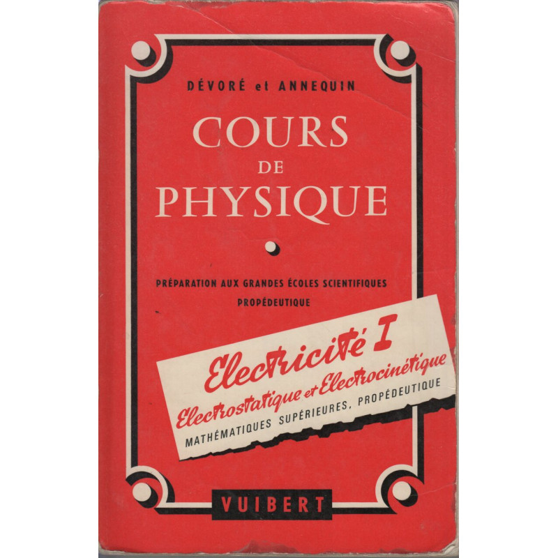Cours de physique electricite I electrostatique et electrocinetique mathematiques superieures Devore Annequin Vuibert. 1963 in 8. Broché. 264 pages Mauvais état
